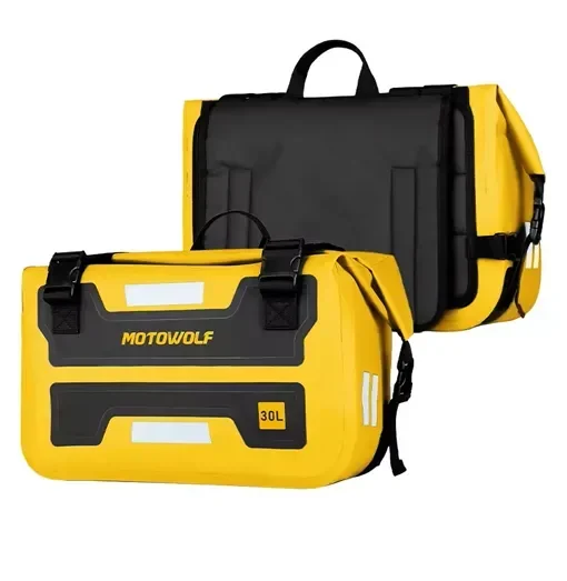 Αδιάβροχη ταξιδιωτική τσάντα μοτοσυκλέτας Motowolf 30L – Έχει μεγάλη χωρητικότητα για να χωράει τα απαραίτητα αντικείμενα για μακρινά ταξίδια, όπως ρούχα, παπούτσια, εργαλεία και προσωπικά αντικείμενα.
