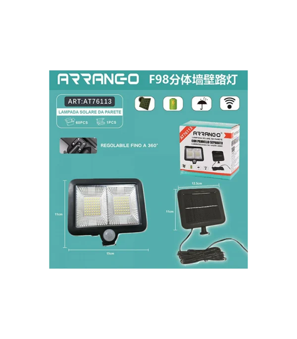 Αδιάβροχος Ηλιακός Προβολέας Τοίχου 100 LED Με Ανιχνευτή Κίνησης, Φωτοκύτταρο & Πάνελ Φόρτισης ARRANGO AT76113