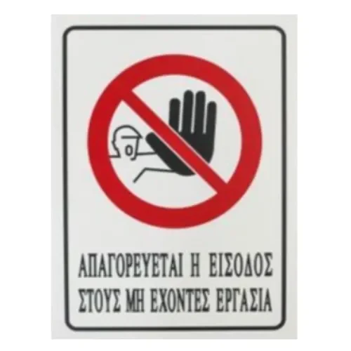 Αυτοκόλλητη Πινακίδα Σήμανσης 20x15cm “ΑΠΑΓΟΡΕΥΕΤΑΙ Η ΕΙΣΟΔΟΣ ΣΤΟΥΣ ΜΗ ΕΧΟΝΤΕΣ ΕΡΓΑΣΙΑ” SDS-13693 – Εύκολη τοποθέτηση!