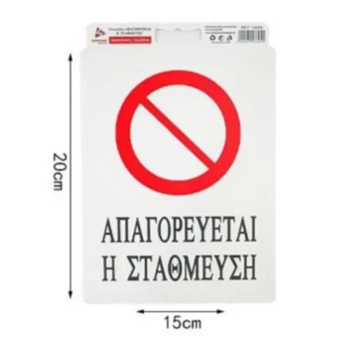 Αυτοκόλλητη Πινακίδα Σήμανσης 20x15cm “ΑΠΑΓΟΡΕΥΕΤΑΙ Η ΣΤΑΘΜΕΥΣΗ” SDS-13695 – Εύκολη τοποθέτηση!
