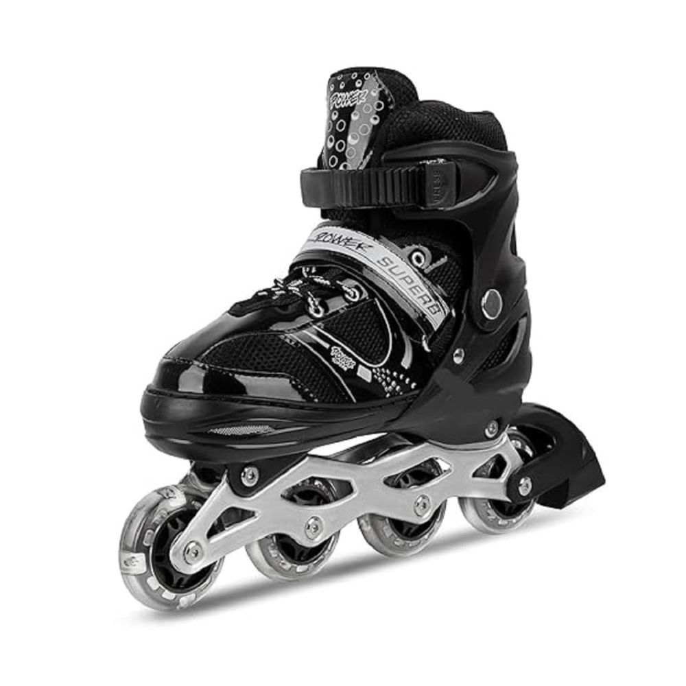 Αυξομειούμενα Πατίνια Rollers με Φωτιζόμενους Τροχούς και Φρένο – Μαύρο: Το πατινάζ είναι ένα υγιεινό και ενεργητικό άθλημα και τα παιδιά μπορούν να απολαύσουν ευχάριστο ελεύθερο χρόνο με πατίνια!