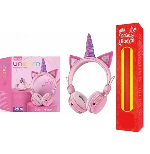 Χαριτωμένα AH805 Unicorn Ασύρματα On Ear Παιδικά Ακουστικά που μπορούν να συνδεθούν ασύρματα σε οποιαδήποτε συσκευή μέσω Bluetooth.
