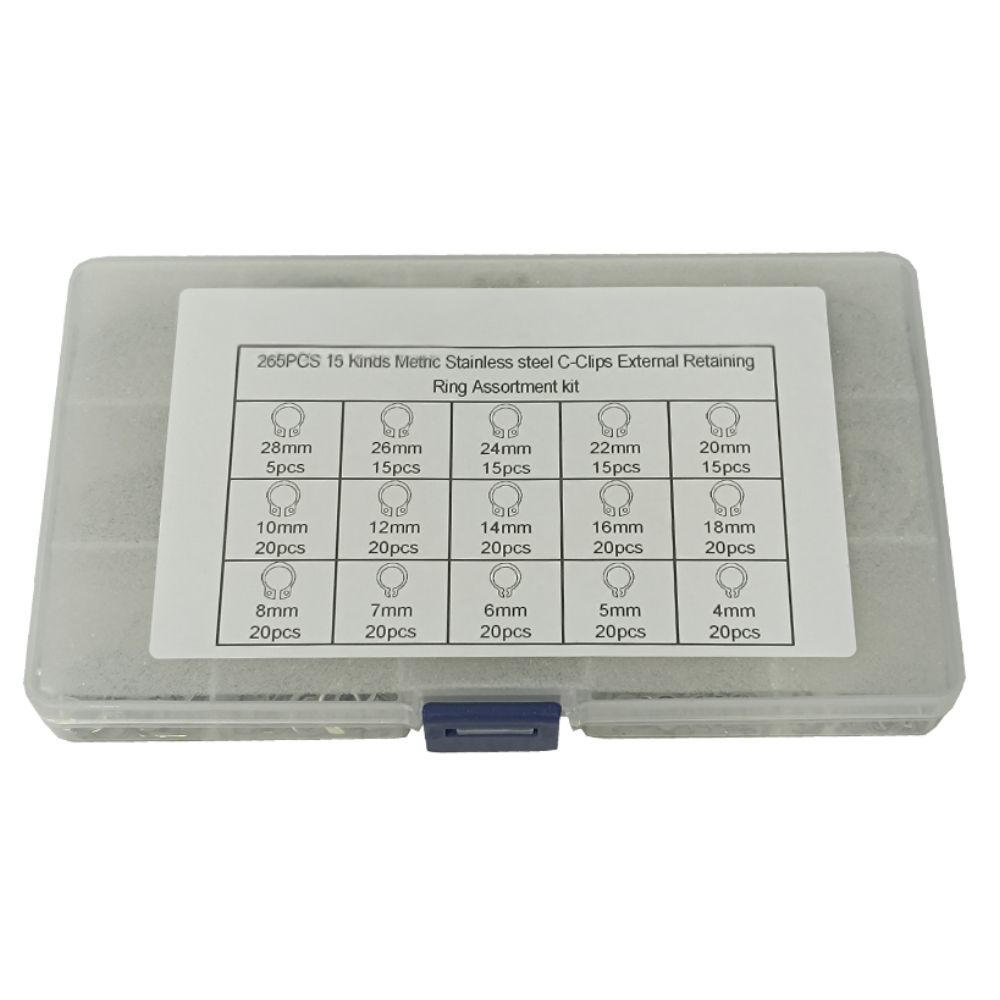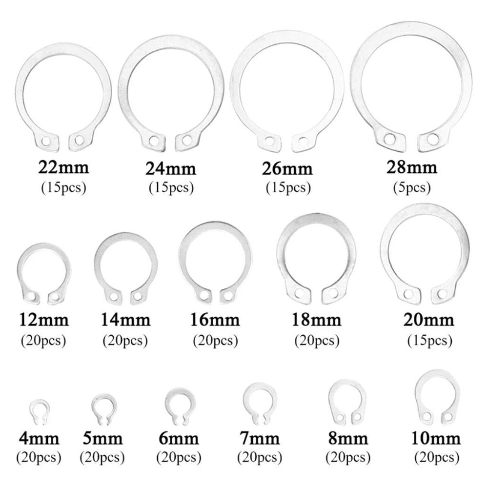 Ασφάλειες SNAP RING, μετρικές, εξωτερικές, ανοξείδωτο ατσάλι σετ 265 τεμαχίων.