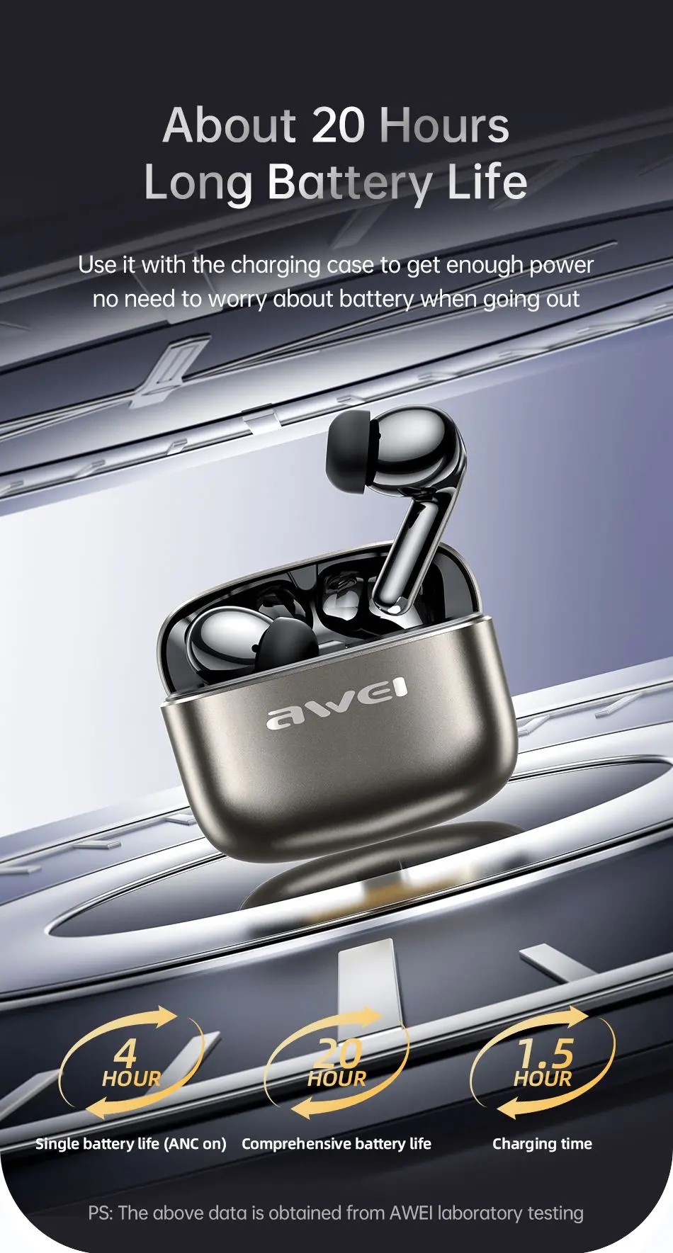 Η γρήγορη φόρτιση ολοκληρώνεται σε περίπου 1.5 ώρα, ενώ ο χρόνος αναμονής έως 300 ώρες εξασφαλίζει ότι τα ακουστικά είναι πάντα έτοιμα για χρήση.