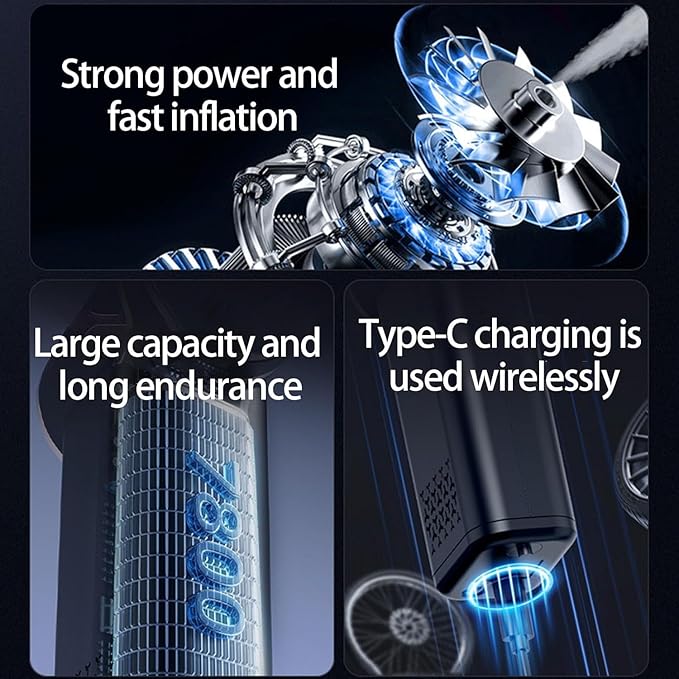 Το ενσωματωμένο φως LED με λειτουργία συνεχούς φωτισμού και προειδοποιητικού σήματος διευκολύνει τη χρήση σε σκοτεινά περιβάλλοντα ή σε καταστάσεις έκτακτης ανάγκης, ενώ τα πολλαπλά ακροφύσια καλύπτουν ανάγκες καθαρισμού και φουσκώματος για αυτοκίνητα, μοτοσικλέτες, ποδήλατα και αθλητικό εξοπλισμό.