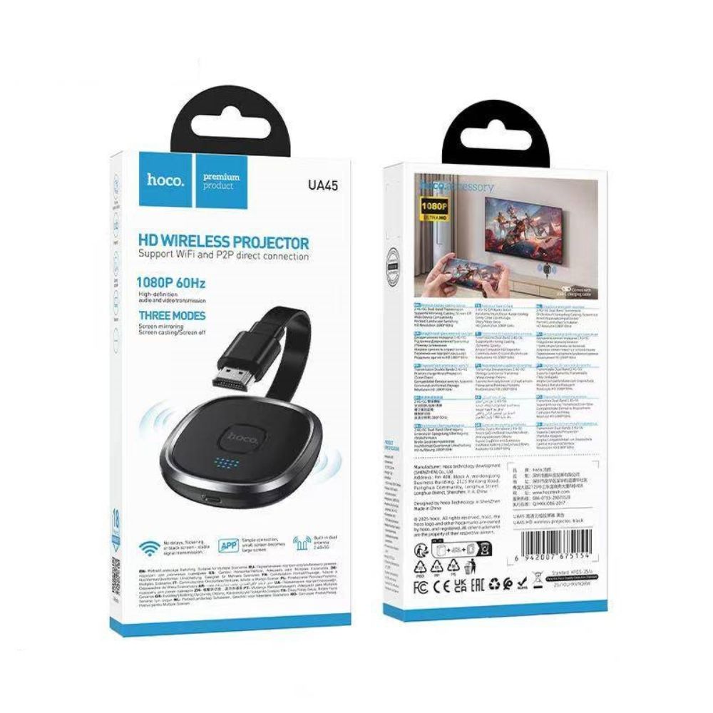 Το HOCO UA45 HD Wireless Display Adapter αποτελεί μια πρακτική λύση για να απολαμβάνεις περιεχόμενο σε μεγαλύτερη οθόνη, είτε βρίσκεσαι στο σπίτι είτε στη δουλειά.