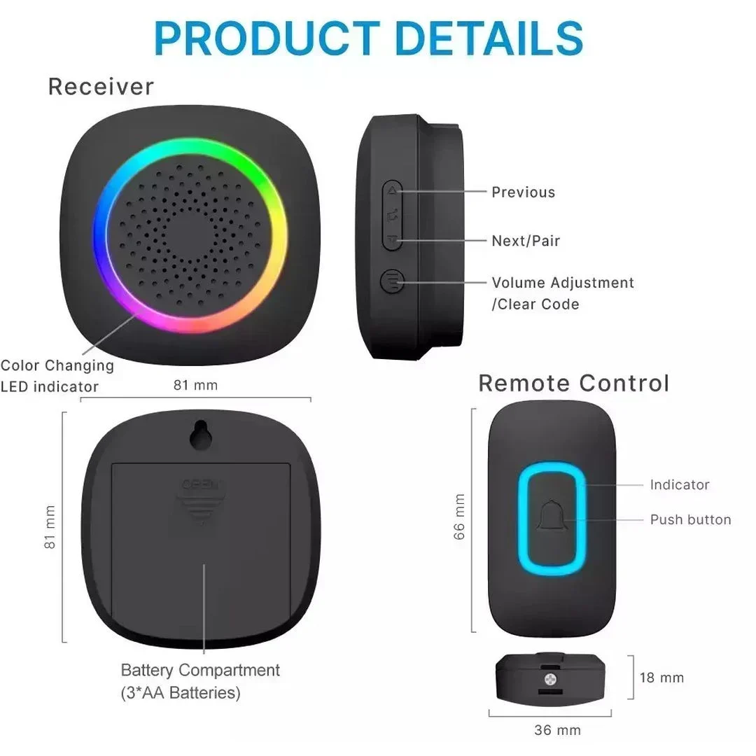 Κιτ κουδουνιού πόρτας που αποτελείται από 1 πομπό και 2 δέκτες, με μπαταρίες και RGB LED φωτισμό!