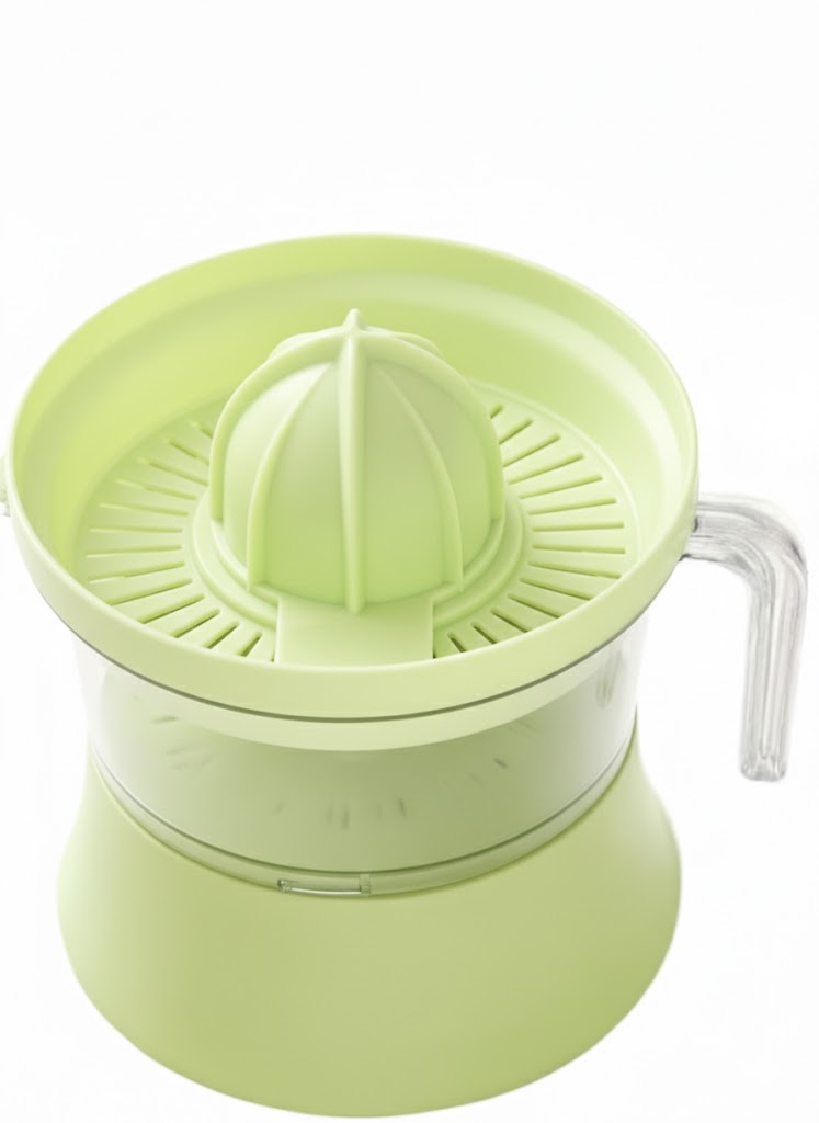 Η κωνική κεφαλή πίεσης επιτρέπει την αποτελεσματική συμπίεση του φρούτου, αφήνοντας σχεδόν μόνο τη φλούδα και συγκεντρώνοντας τον χυμό στο διάφανο δοχείο βάσης.