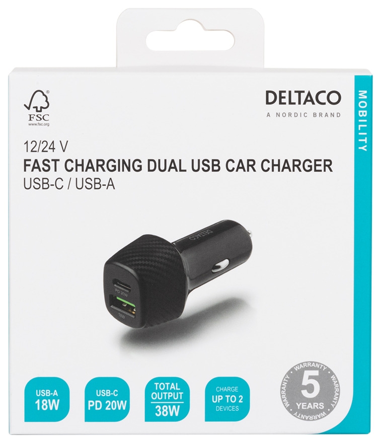 Απολαύστε αποτελεσματική φόρτιση εν κινήσει με τον φορτιστή αυτοκινήτου USB της Deltaco που διαθέτει έναν ισχυρό συνδυασμό θυρών USB-C 18W και USB-A 18W, παρέχοντας συνολική ισχύ 36W. Σχεδιασμένος με προηγμένα χαρακτηριστικά ασφαλείας, συμπεριλαμβανομένου του ελέγχου θερμοκρασίας και της προστασίας από υπερένταση, αυτός ο συμπαγής φορτιστής εξασφαλίζει μια αξιόπιστη και ασφαλή εμπειρία φόρτισης για τις συσκευές σας.