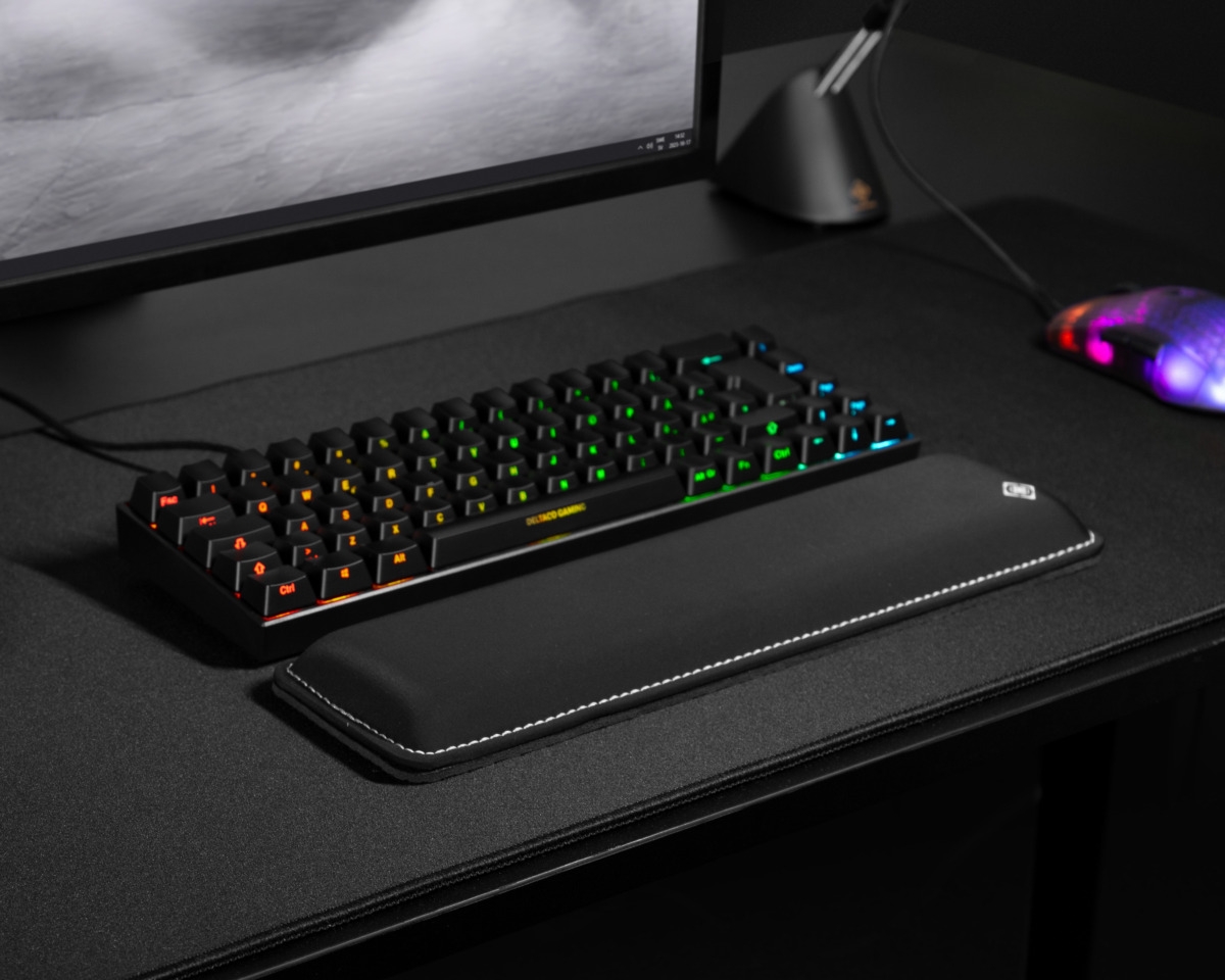 Συμπαγές εργονομικό στήριγμα καρπού για πληκτρολόγια 60/65% με cooling gel και αφρό μνήμης. Επιφάνεια από ύφασμα που δεν ξεφτίζει και παραμένει μαλακό κατά τη διάρκεια του παιχνιδιού. Η αντιολισθητική βάση από καουτσούκ διασφαλίζει ότι θα παραμένει σταθερά στη θέση του.