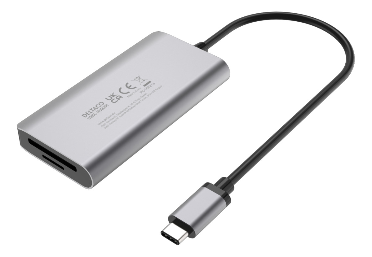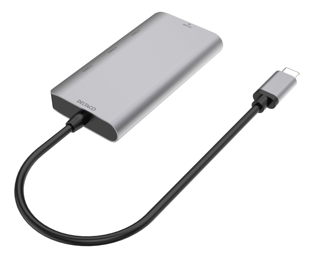 Deltaco Type C Hub 3x USB-A, SD/microSD card slot, Ασημί/Γκρι USBC-HUB200
