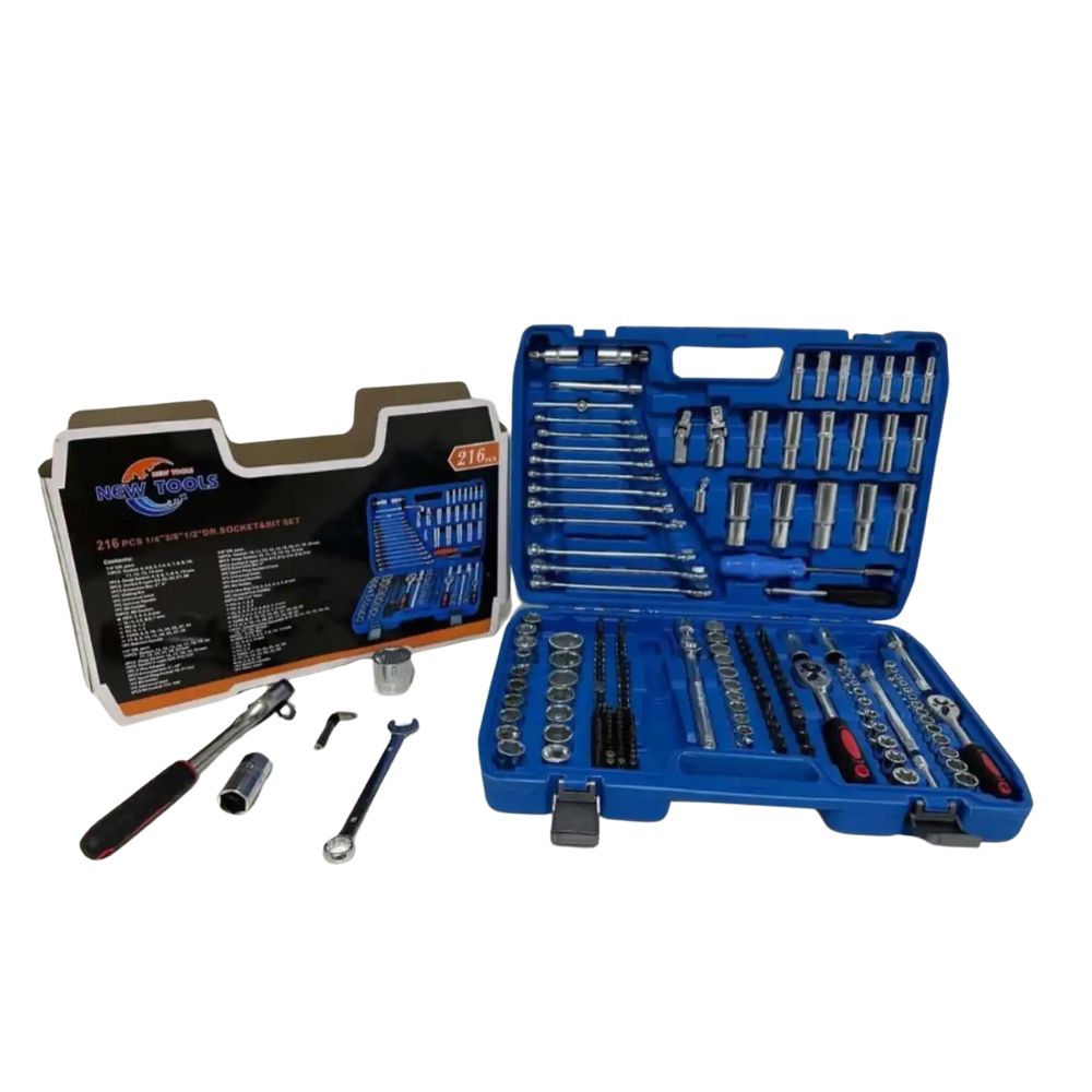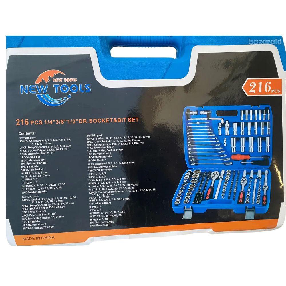 Επαγγελματικό Σετ Καρυδάκια & Κατσαβιδόμυτες – 216 τμχ (1/4”, 3/8”, 1/2” DR): Ιδανικό για επαγγελματική και ερασιτεχνική χρήση, καλύπτοντας τις ανάγκες κάθε συνεργείου, μηχανικού ή μάστορα.