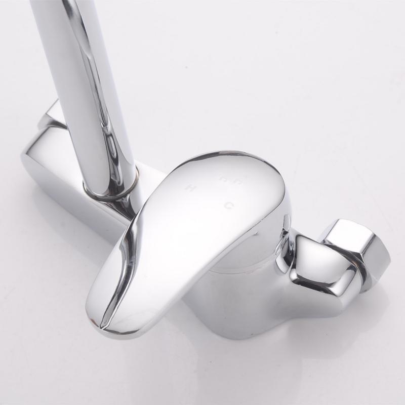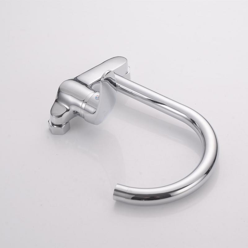 Αυτή η επιτοίχια αναμεικτική μπαταρία νεροχύτη κουζίνας διαθέτει κομψό και μοντέρνο σχεδιασμό που ταιριάζει εύκολα σε κάθε τύπο κουζίνας, προσφέροντας πρακτικότητα και αισθητική ισορροπία στον χώρο.