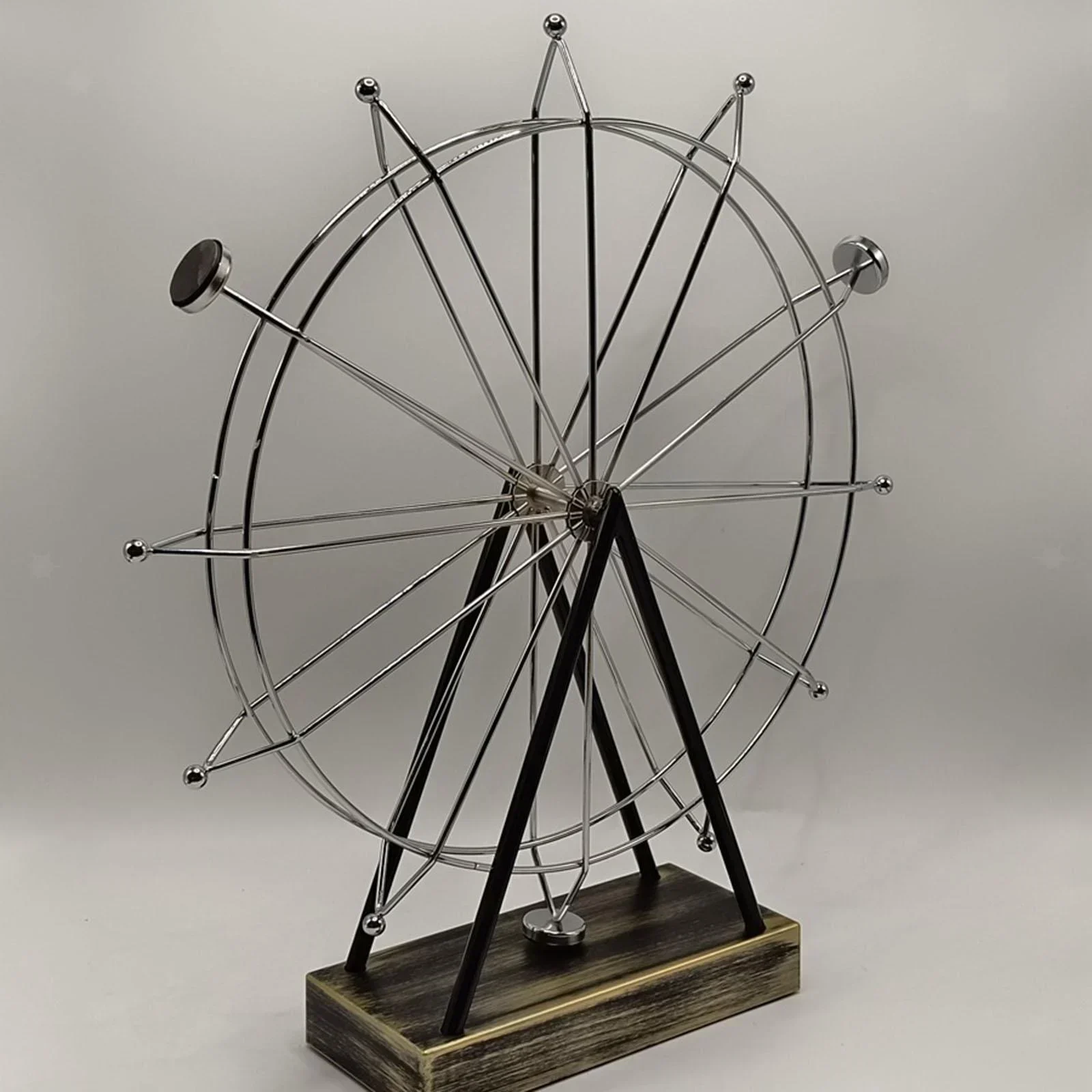 Το άγαλμα του περιστρεφόμενου τροχού είναι κατασκευασμένο από σιδερένιο υλικό, το οποίο είναι δυνατό και έχει λείες γραμμές, καθιστώντας το ιδανική επιλογή για διακόσμηση σπιτιού.