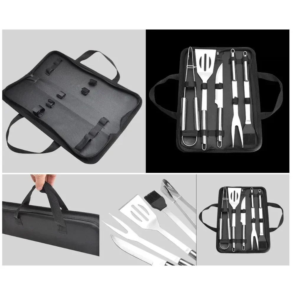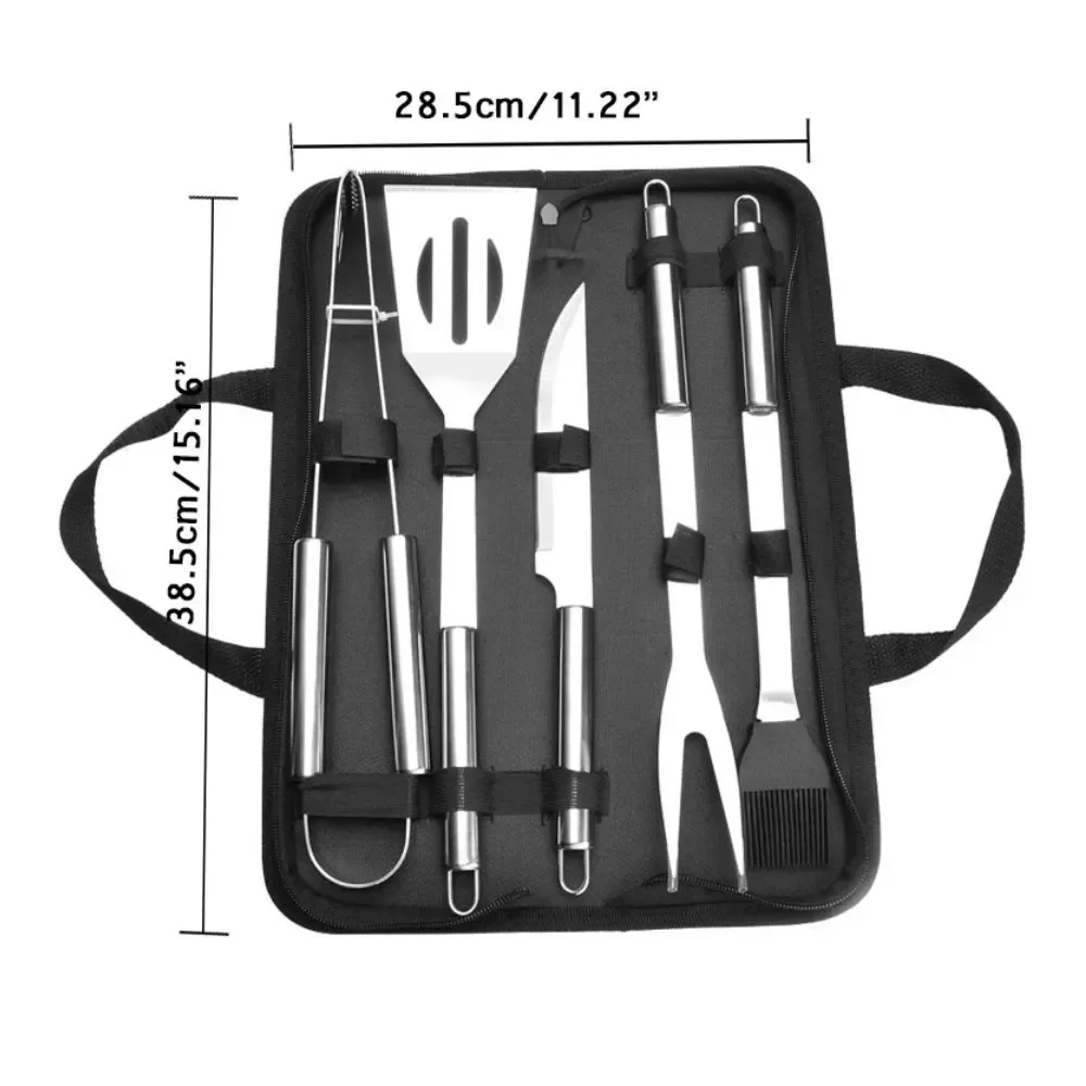 Τα εργαλεία μπάρμπεκιου σε θήκη μεταφοράς 5 τεμάχια 16179-17 κατασκευάζονται από ανοξείδωτο ατσάλι –  κατάλληλο για τρόφιμα – με τσάντα αποθήκευσης από νάιλον και βούρτσα σιλικόνης!