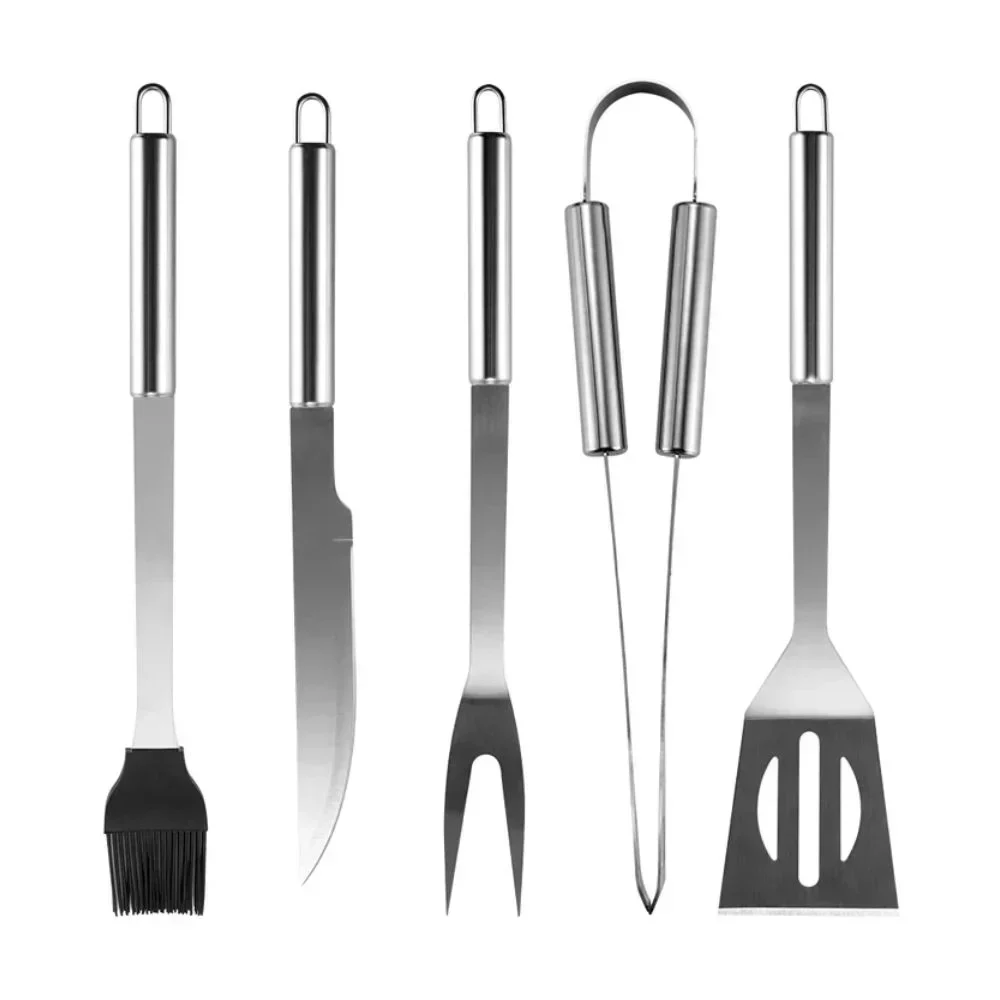 • Το σετ για το ψήσιμο αποτελούμενο από 5 κομμάτια είναι φτιαγμένο από ανοξείδωτο ατσάλι, εγγυώμενο ότι τα εργαλεία δεν θα λυγίσουν ή θα σπάσουν κατά τη χρήση.