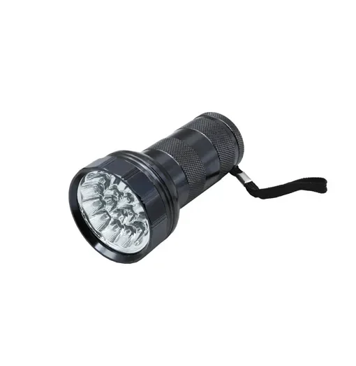 LED φακός με ψυχρό λευκό φωτισμό, σε μαύρο χρώμα. Λειτουργεί με 3 μπαταρίες ΑΑ (δεν περιλαμβάνονται). Διαθέτει 17 LED SMD με ψυχρό λευκό φωτισμό. Είναι ελαφρύς, με εργονομικό σχεδιασμό και κορδονάκι, για εύκολο και άνετο κράτημα. Έχει στιβαρή κατασκευή από αλουμίνιο και είναι αρκετά ανθεκτικός στο νερό και στην σκόνη. Πρακτικός και ιδανικός για να τον έχετε μαζί σας παντού, χάρη στο μέγεθός του.