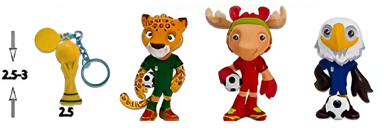 Οι φιγούρες έχουν ύψος περίπου 2.5 έως 3 cm και διαθέτουν πολύχρωμο και παιχνιδιάρικο σχεδιασμό, ιδανικό για παιχνίδι αλλά και για διακόσμηση παιδικού χώρου ή συλλογής.