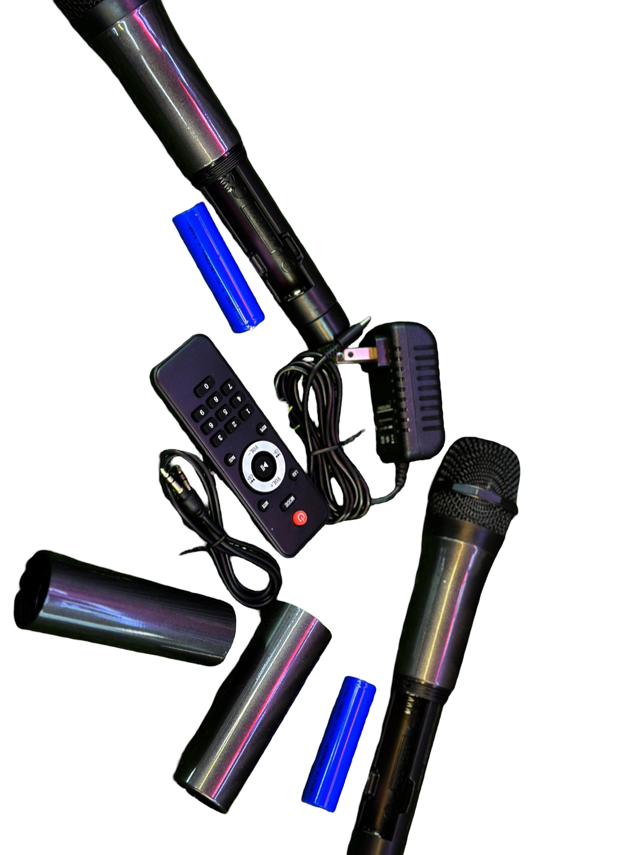 Στη συσκευασία περιλαμβάνονται δύο ασύρματα μικρόφωνα, τα οποία το καθιστούν ιδανικό για καραόκε, παρουσιάσεις, πάρτι γενεθλίων και οικογενειακές συγκεντρώσεις χωρίς την ανάγκη πρόσθετου εξοπλισμού.