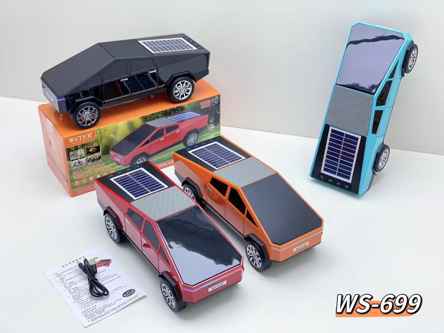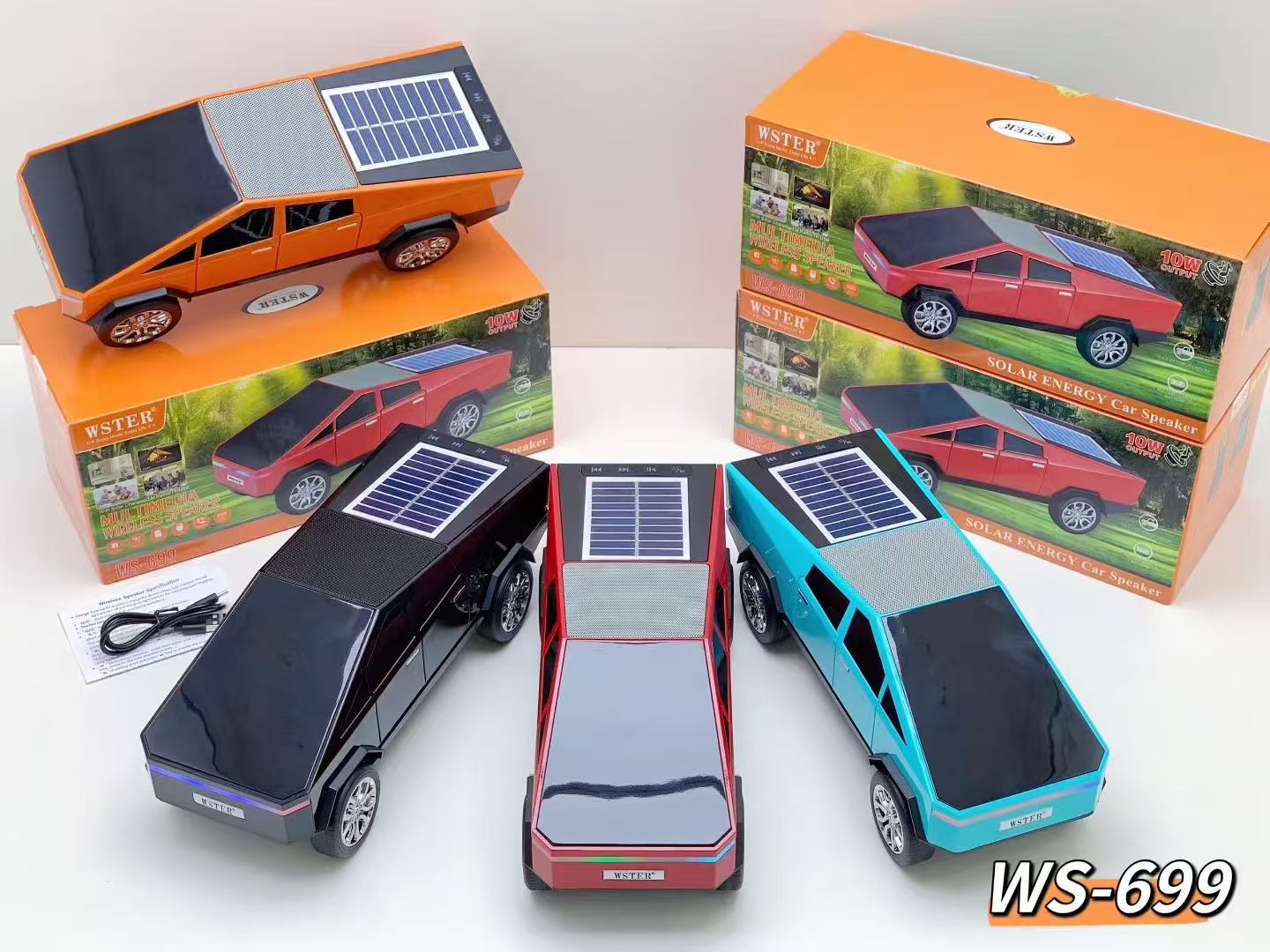 Το Wster WS-699 είναι ένα φορητό Bluetooth ηχείο με εντυπωσιακό σχεδιασμό εμπνευσμένο από το Tesla Cyberpickup, συνδυάζοντας μοντέρνα αισθητική με πρακτική λειτουργικότητα για μουσική σε κάθε περίσταση.