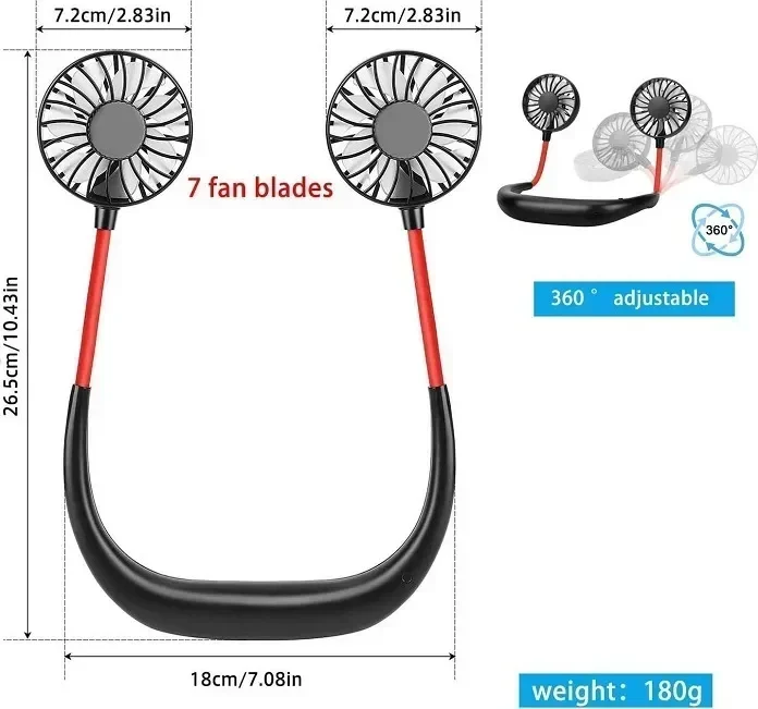 Οι ανεμιστήρες φοριούνται άνετα στο λαιμό και σας αφήνουν τα χέρια ελεύθερα να κάνετε την δουλειά σας. Το προϊόν αποτελείται από 2 ισχυρούς και αθόρυβους ανεμιστήρες. Διαθέτουν 3 ρυθμίσεις ταχύτητας για να επιλέξετε αυτή που σας ταιριάζει περισσότερο και λειτουργούν με επαναφορτιζόμενη μπαταρία που φορτίζει μέσω καλωδίου USB.