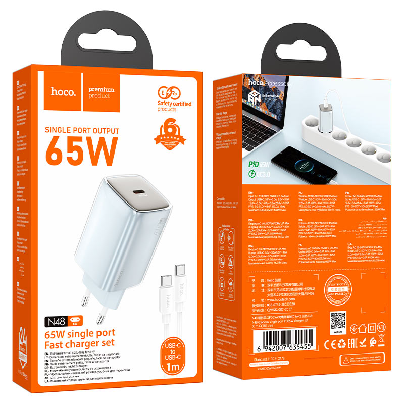 Φορτιστής PD65W Με Θύρα Type-C Και Καλώδιο Type-C Hoco N48 Glorious