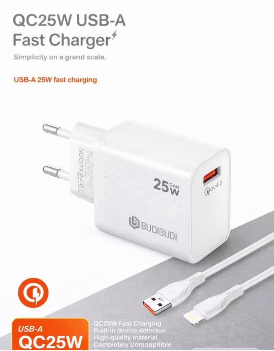 Αυτός ο φορτιστής USB-A από την Budibudi με ισχύ 25W αποτελεί μια αξιόπιστη και πρακτική επιλογή για καθημερινή φόρτιση συσκευών, συνδυάζοντας ταχύτητα, σταθερότητα και σύγχρονη τεχνολογία σε έναν κομψό και λειτουργικό σχεδιασμό.