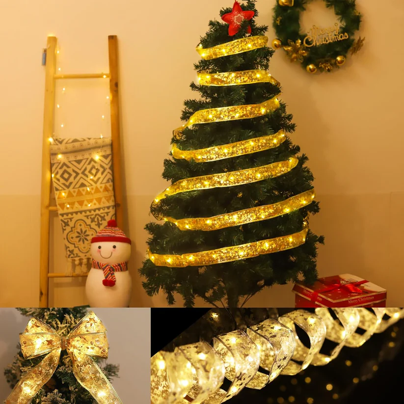 Με σχέδιο κορδέλας που περιέχει ενσωματωμένα λαμπάκια LED, δημιουργεί ζεστή και λαμπερή ατμόσφαιρα, ιδανική για χριστουγεννιάτικο δέντρο, πόρτες, βιτρίνες ή τραπέζια.