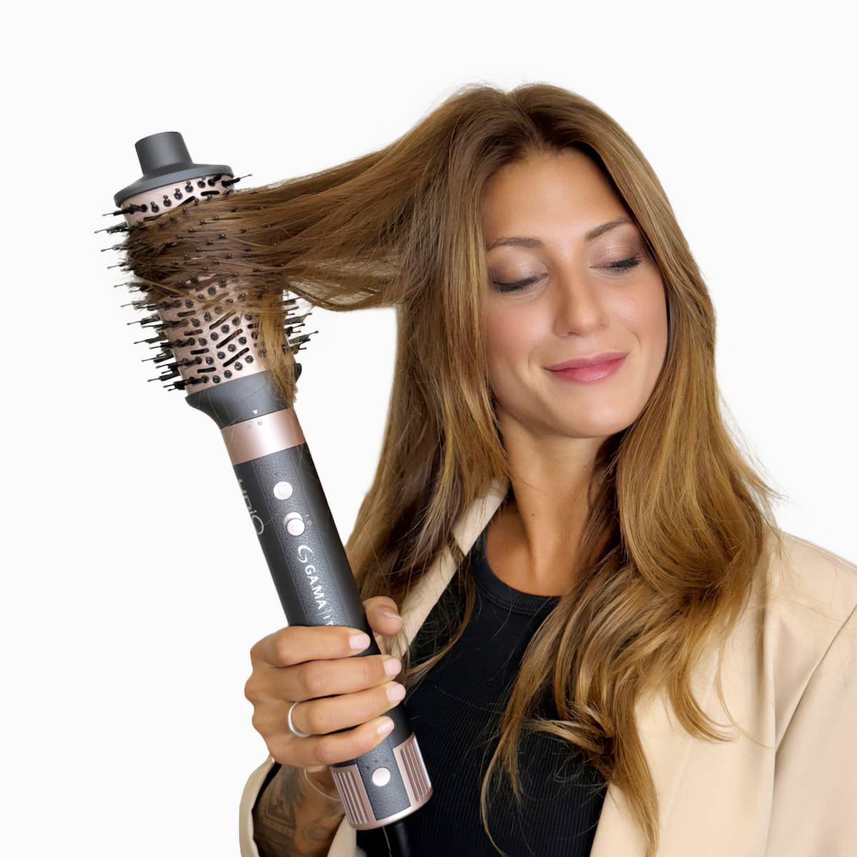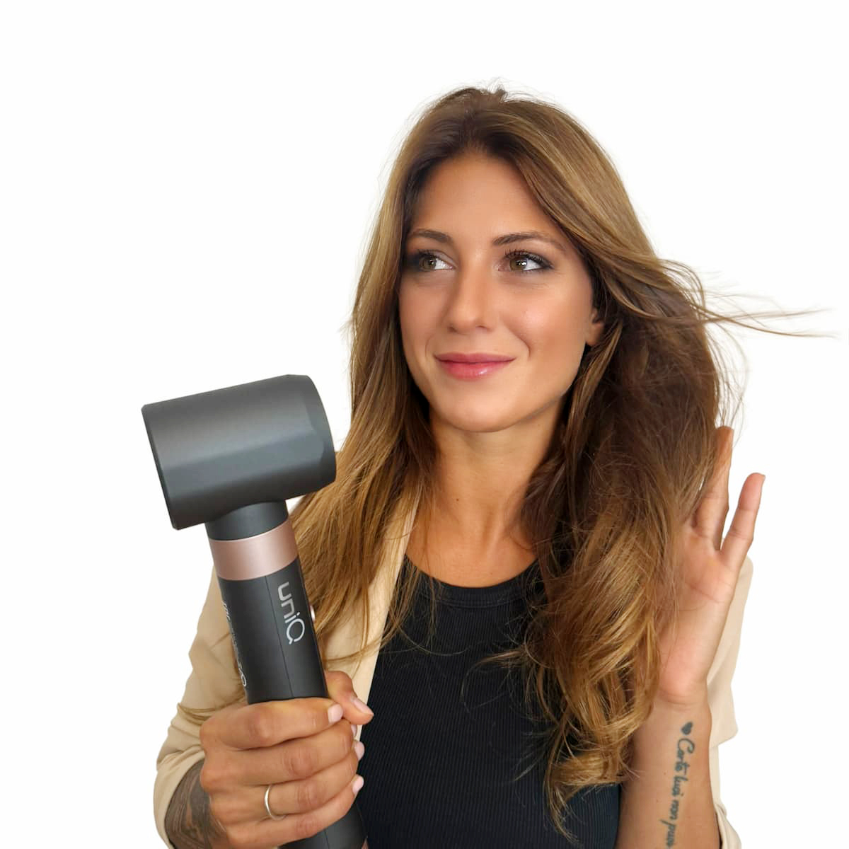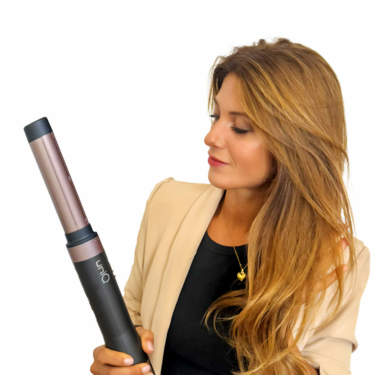 Το UniQ Aura της GAMA είναι ένα ισχυρό επαγγελματικό multistyler 4-σε-1, σχεδιασμένο για απόλυτη ευελιξία στο styling, τόσο σε στεγνά όσο και σε βρεγμένα μαλλιά. Με ισχύ 1500 W, τεχνολογία Coanda για φυσικούς κυματισμούς και μπούκλες, brushless μοτέρ 100.000 rpm για γρήγορο και αθόρυβο στέγνωμα, καθώς και 3 ρυθμίσεις θερμοκρασίας και 3 ταχύτητες, προσφέρει πλήρη έλεγχο σε κάθε χτένισμα. Διαθέτει 4 ανταλλακτικές κεφαλές, όπως 2 κεφαλές αυτόματης περιτύλιξης με αέρα για μπούκλες, κεφαλή για στέγνωμα και οβάλ βούρτσα 60 mm που τιθασεύει, λειαίνει και χαρίζει όγκο με ένα μόνο πέρασμα. Με τεχνολογία ιόντων τουρμαλίνης συμβάλλει στη μείωση του φριζαρίσματος και στη διατήρηση της φυσικής υγρασίας των μαλλιών. Ο ελαφρύς, εργονομικός σχεδιασμός, η αθόρυβη λειτουργία και η λειτουργία αυτοκαθαρισμού ολοκληρώνουν μια ολοκληρωμένη εμπειρία styling υψηλού επιπέδου.