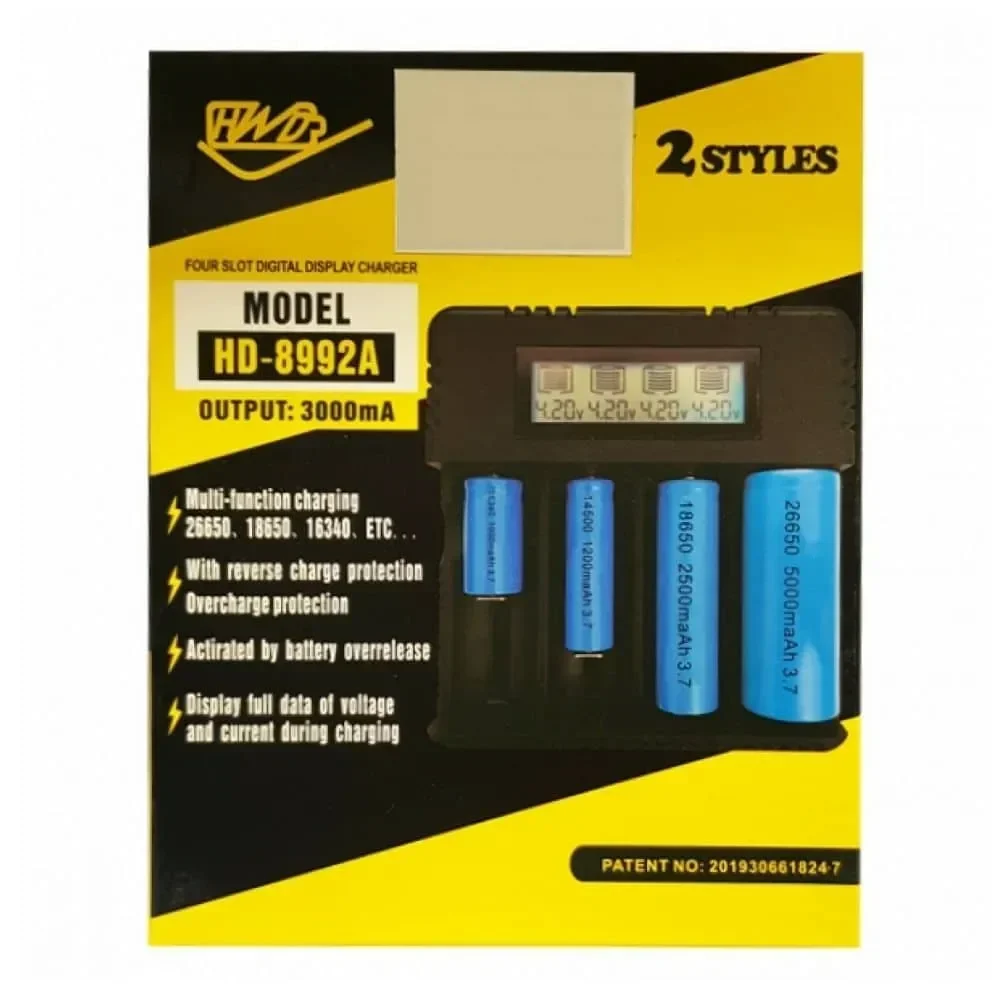 HD-8992A Φορτιστής 4 Μπαταριών Ni-MH Μεγέθους AA/AAA: Διαθέτει 4 υποδοχές για γρήγορη κι εύκολη φόρτιση μπαταριών.