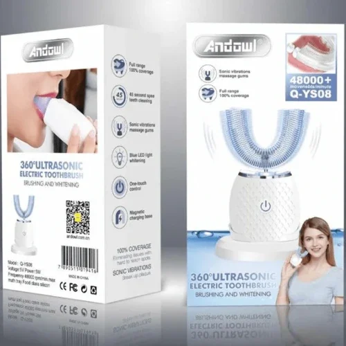 Ηλεκτρική οδοντόβουρτσα υπερήχων 360° για καθαρισμό και λεύκανση δοντιών Q-YS08 Andowl – ροζ