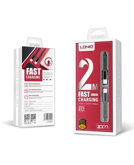Καλώδιο δεδομένων LDNIO LC92, Type-C – σε γκρι χρώμα, 2.0m