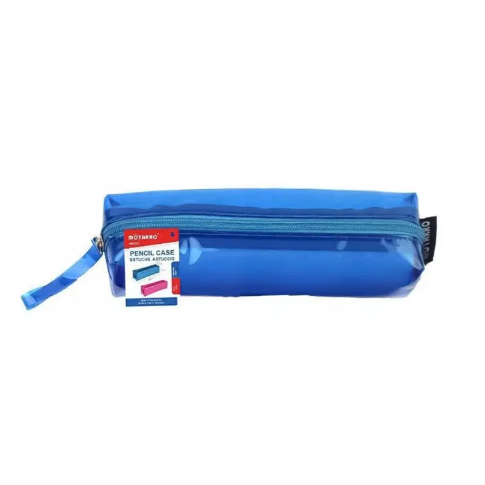 Κασετίνα βαρελάκι από ύφασμα της Motarro μιας θέσης, με φερμουάρ, σε μπλε χρώμα.