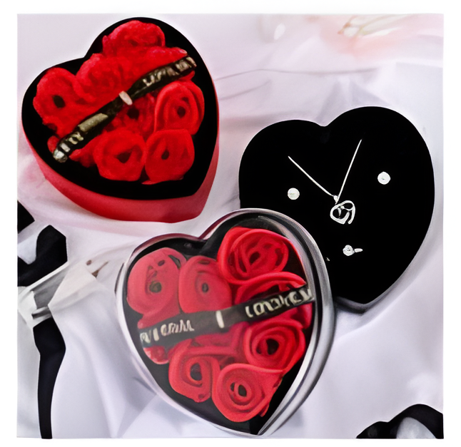 Κουτί Δώρου Πολυτελείας Καρδιά με Τεχνητά Τριαντάφυλλα & Θήκη Κοσμήματος 87682