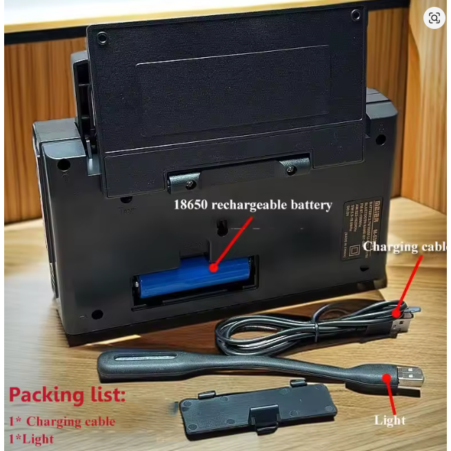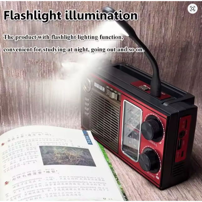 Η ενσωματωμένη επαναφορτιζόμενη μπαταρία 18650 φορτίζει μέσω USB Type-C ή ηλιακού πάνελ στο πίσω μέρος της συσκευής, προσφέροντας πλήρη αυτονομία. Διαθέτει επίσης LED φως ανάγνωσης, εύκαμπτο USB φακό και ενσωματωμένα πλήκτρα MP3 στο μπροστινό μέρος για εύκολο έλεγχο. Ένα πολυλειτουργικό ραδιόφωνο που συνδυάζει παραδοσιακό σχεδιασμό με σύγχρονη τεχνολογία.