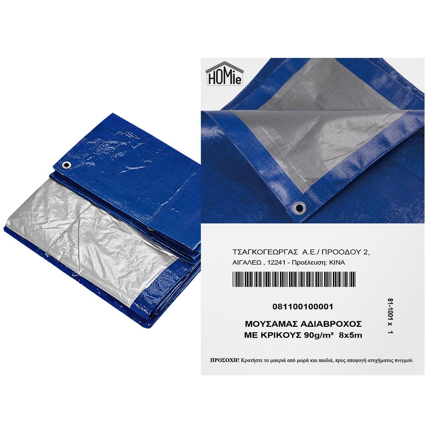 Αδιάβροχος με κρίκο ανά 1m 90g/m², 8x5m
