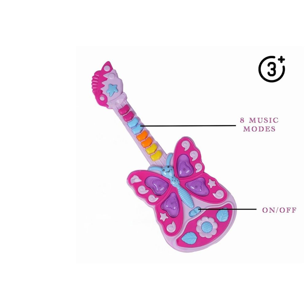 Η κιθάρα αυτή διαθέτει πλήκτρα με μελωδίες, δίνοντας στα παιδιά τη δυνατότητα να πειραματιστούν με ήχους και ρυθμούς.