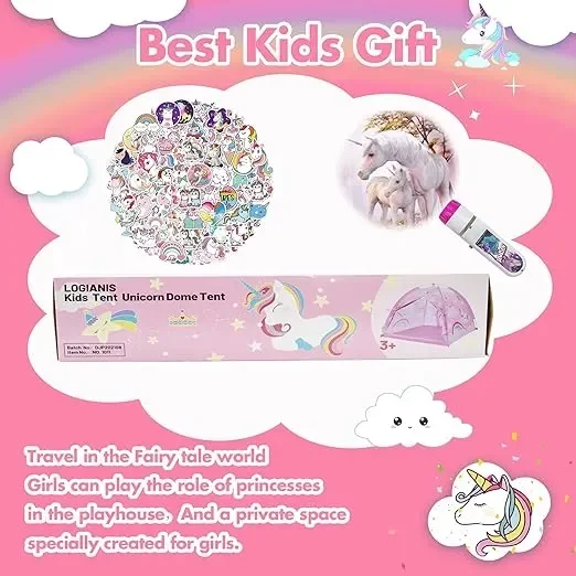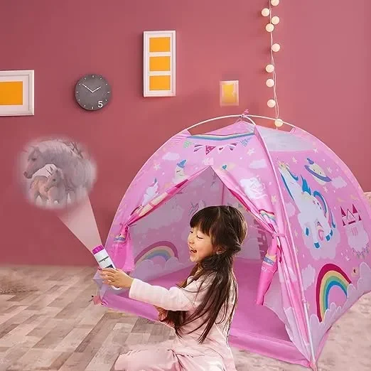 Παιδική σκηνή με θόλο φακό-προτζέκτορα και διαφάνειες Μονόκερος – Δώστε μια διαφορετική πινελιά στο παιδικό δωμάτιο χάρις σε αυτή την μοναδική σκηνή μονόκερου!
