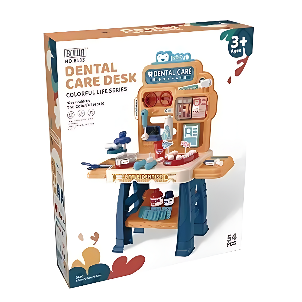 Μετατρέψτε το παιχνίδι ρόλων σε μια εκπαιδευτική εμπειρία με τον παιδικό πάγκο οδοντιάτρου με αξεσουάρ! Εκπαιδευτικό παιχνίδι ρόλων που ενισχύει τη φαντασία και τις δεξιότητες. Κατάλληλο για ηλικίες 3+.