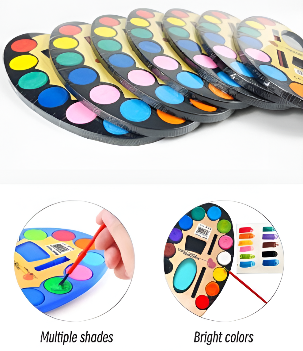 Αυτή η παλέτα ζωγραφικής με νερομπογιές αποτελεί μια ολοκληρωμένη επιλογή για δημιουργική απασχόληση παιδιών αλλά και αρχάριων καλλιτεχνών που θέλουν εύκολη και άμεση χρήση χωρίς επιπλέον εξοπλισμό.