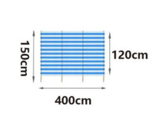 Με μήκος 400cm και ύψος 150cm προσφέρει μεγάλη κάλυψη, ενώ το ωφέλιμο ύψος προστασίας 120cm εξασφαλίζει αποτελεσματική θωράκιση από τον αέρα και την άμμο.