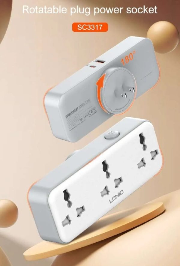 Πολύπριζο Universal Με 3 Πρίζες AC Και 2 Θύρες USB PD/QC 3.0 30W Περιστρεφόμενο Ldnio SC3317