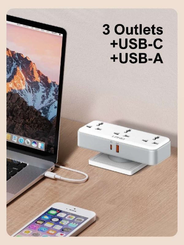 Διαθέτει τρεις πρίζες AC universal που υποστηρίζουν βύσματα τύπου EU, UK και US, επιτρέποντας τη σύνδεση διαφόρων συσκευών χωρίς τη χρήση επιπλέον αντάπτορα.