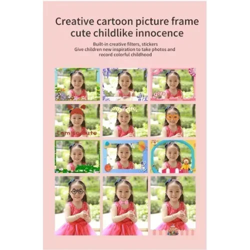 Πιο καθαρή στιγμή εγγραφής και επιλογές πολλαπλών σκηνών- Εξοπλισμένο με αυτόματη εστίαση, 8,0 Mega pixel και βίντεο 1080P. Βελτιώθηκε σημαντικά ο ορισμός των φωτογραφιών. Απολαύστε την υπέροχη στιγμή χαράς για αγόρια ή κορίτσια. Με τη λήψη αυτοκόλλητων με μεγάλο κεφάλι, τα παιδιά μπορούν να τραβήξουν φωτογραφίες με κορνίζες, να αφήσουν μερικές ξεκαρδιστικές φωτογραφίες με την οικογένεια ή τους φίλους τους.
