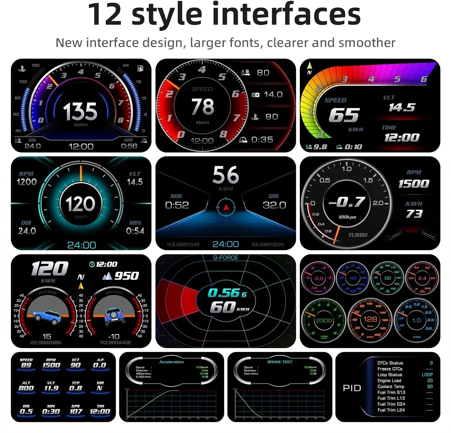 Νέα εμπειρία οδήγησης: Με 12 οθόνες, μπορείτε να κάνετε εναλλαγή μεταξύ τους σύμφωνα με τις προτιμήσεις σας. Με μετρητές LCD, σαφή κωδικό σφάλματος και ανάγνωση ροής δεδομένων, μπορείτε να προσαρμόσετε την εμπειρία οδήγησης και να αντιμετωπίσετε εύκολα τυχόν προβλήματα. Δεν χρειάζεται πλέον να μαντεύετε τι συμβαίνει με το αυτοκίνητό σας ή να πληρώνετε για ακριβές επισκευές.