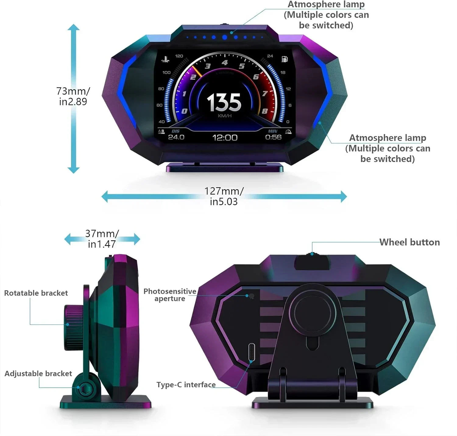 Εύκολο στην εγκατάσταση και τη χρήση: Το ταχύμετρό μας είναι plug and play, με ρυθμιζόμενο βραχίονα που μπορεί να τοποθετηθεί στο ταμπλό ή στο παρμπρίζ. Είναι διπλής λειτουργίας, με λειτουργίες OBD+GPS και μπορεί να διαβάσει περισσότερα από 100 είδη δεδομένων στο αυτοκίνητο. Εάν το αυτοκίνητό σας δεν διαθέτει πρωτόκολλο OBD2, μπορεί να εμφανίσει τη λειτουργία GPS.