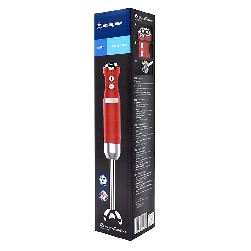 Ραβδομπλέντερ χειρός Retro Series από την Westinghouse! Πρόκειται για το καταλληλότερο εργαλείο για την εκτέλεση συνταγών για βελουτέ και κρεμώδεις σούπες ή dips, αφού διαθέτει 5 ρυθμίσεις ταχύτητας για πλήρη ευελιξία. Ταυτόχρονα, η στιβαρή κατασκευή, η κομψή συσκευασία, καθώς επίσης και το retro design του, το καθιστούν ιδανικό για την διακόσμηση κάθε κουζίνας αλλά και το τέλειο δώρο!