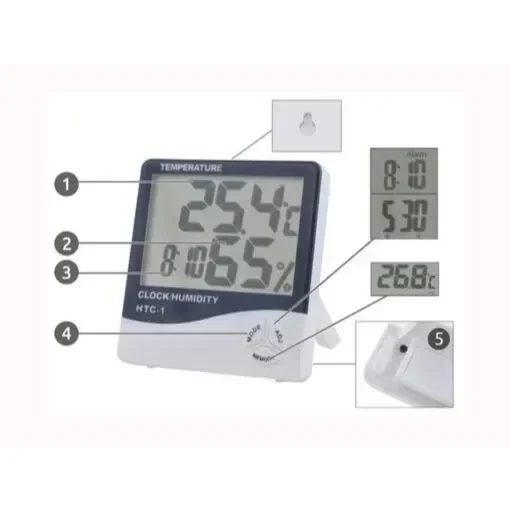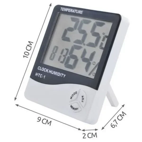 Ρολόι Ξυπνητήρι Θερμόμετρο και Μετρητής Υγρασίας 3 σε 1 με μεγάλη οθόνη και λειτουργία μνήμης, HTC-1