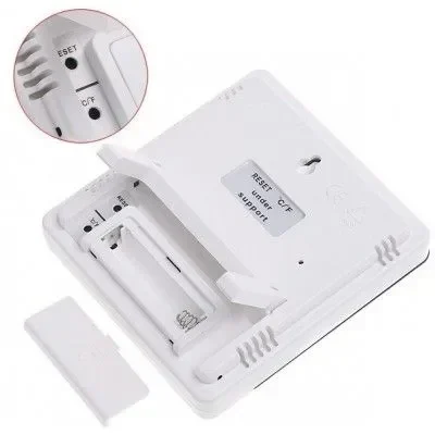 Η εναλλαγή μεταξύ εσωτερικής και εξωτερικής θερμοκρασίας γίνεται με το πάτημα του κουμπιού που βρίσκεται στο πίσω μέρος της συσκευής.