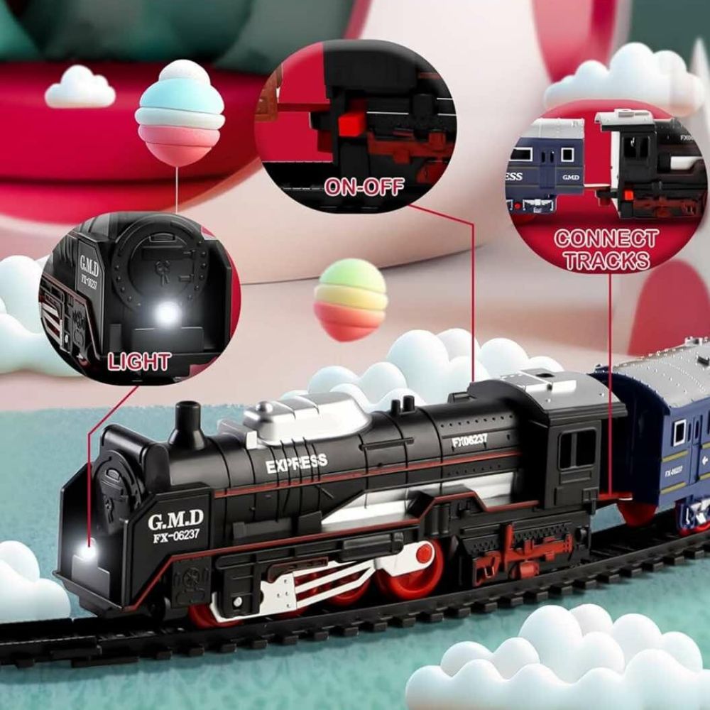 Σετ Παιχνίδι Τρένο 3 Βαγονιών, με Ράγες και Φωτισμό – Classic Train: Ένα εντυπωσιακό σετ που ταξιδεύει μικρούς και μεγάλους πίσω στον ρομαντισμό του ατμού, με ρεαλιστική κίνηση τροχών και αυθεντικό σχεδιασμό που ξυπνά μνήμες και φαντασία.